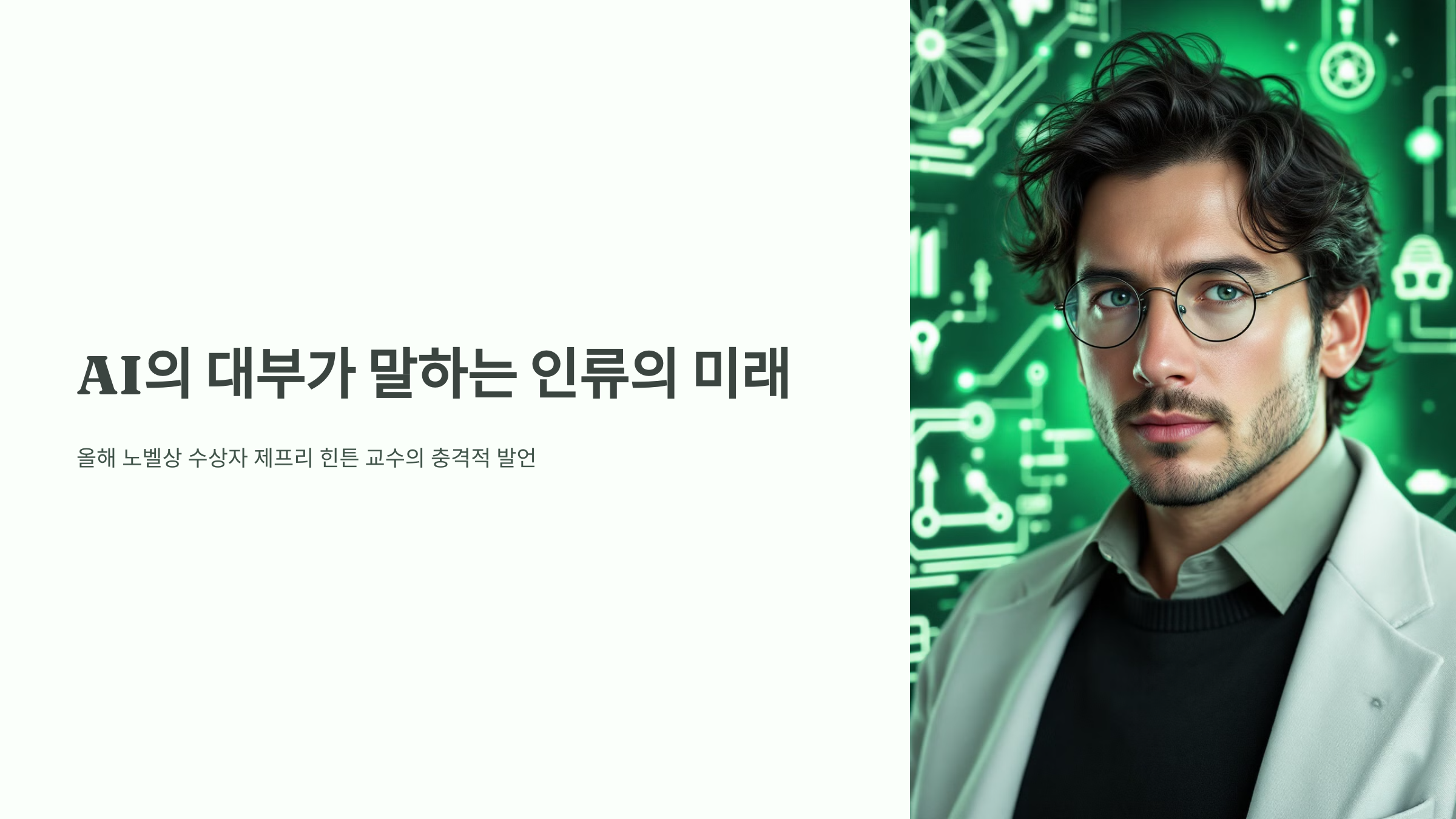 안녕하세요, 독자 여러분. 오늘은 정말 흥미롭고도 무거운 주제를 가지고 왔습니다. 올해 노벨상 수상자이자 AI 연구의 선구자인 제프리 힌튼 교수가 BBC 라디오 4와의 인터뷰에서 충격적인 발언을 했는데요, 함께 자세히 살펴보겠습니다.